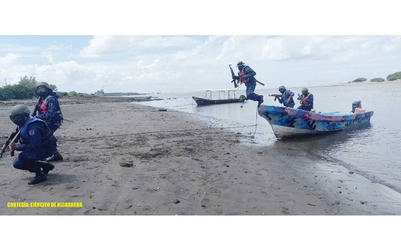 El Ejército de Nicaragua consecuente con el lema de que “Somos el Pueblo mismo uniformado trabajando en su propio beneficio”, el 8 de septiembre de 2021, a través del 1 y 2 Batallón de Tropas Navales de la Fuerza Naval, en coordinación con instituciones del Estado, participaron en el ejercicio de Protección Marítima en los recintos portuarios de la Administración Portuaria Sandino (APS), municipio de Nagarote, departamento de León, con el objetivo de asegurar las nuevas infraestructuras de los isotanques.