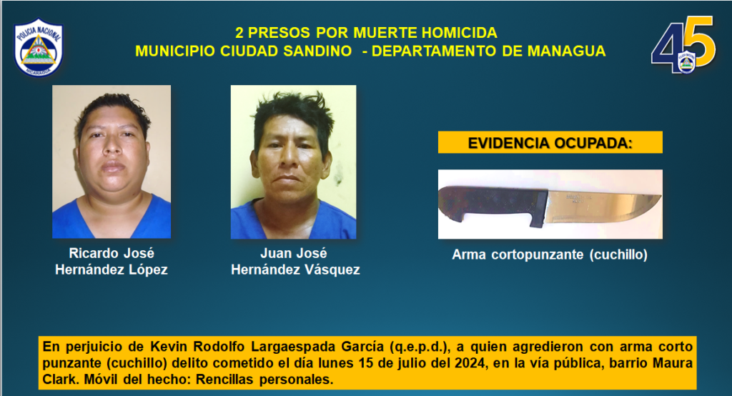 Entre los homicidas tres corresponden al Distrito III de Managua, dos al municipio de Ciudad Sandino y uno al municipio de Maniguas, en Matagalpa.
