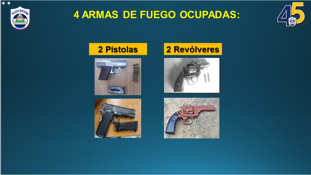 Para concluir, el comisionado presentó cuatro armas de fuego que le fueron ocupadas a los delincuentes entre las cuales destacan dos pistolas y dos revólveres.