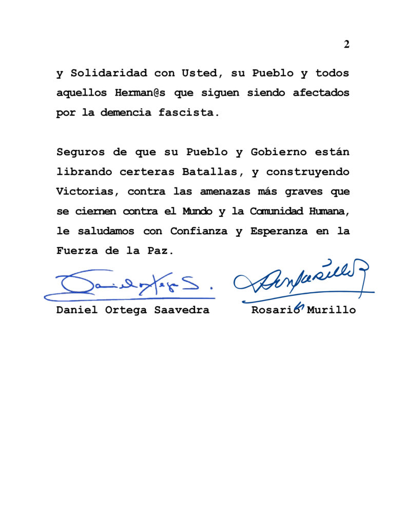 A través de nota de prensa el Gobierno de Nicaragua expresó su solidaridad con el pueblo y Gobierno de Rusia, y condenó enfáticamente los recientes atentados terroristas que afectaron a varias familias el pasado fin de semana.