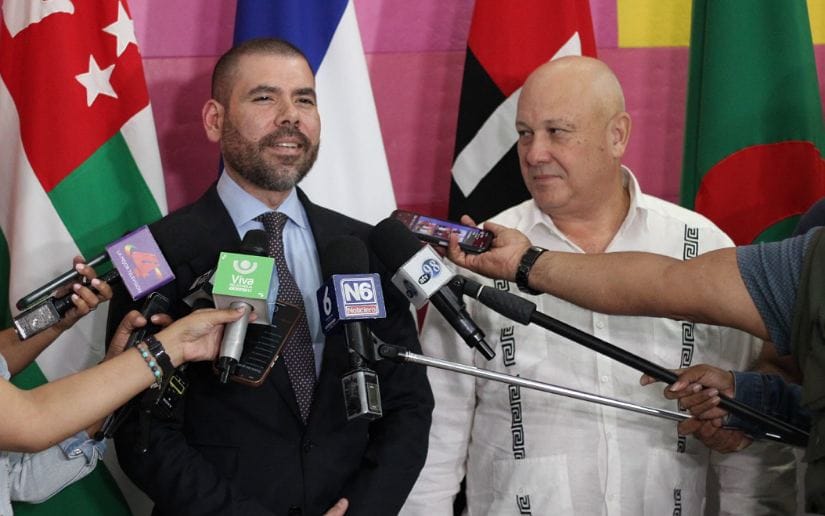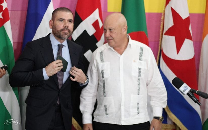 “Aquí estamos recibiendo a nuestra hermanos de la República de Abjasia, representado por su Ministro de Asuntos Exteriores, el compañero Oleg Bártsyts, quien viene en representación de ese pueblo, gobierno hermano”, señaló el Asesor Presidencial.