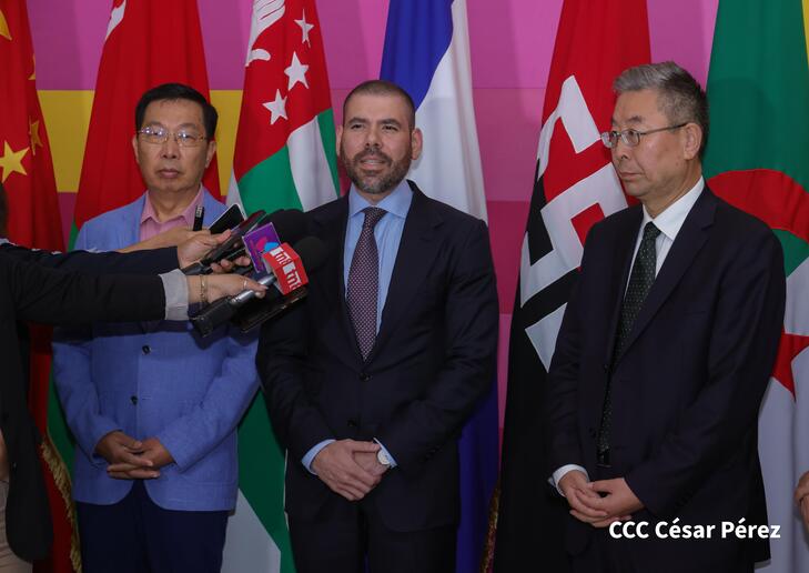 “Esta vez me da mucho gusto poder visitar el hermoso país de Nicaragua, invitación del Frente Sandinista de Liberación Nacional de Nicaragua de asistir al acto conmemorativo por el 46 aniversario del Triunfo de la Revolución Popular Sandinista. En nombre del Partido Comunista de China, quisiera trasladar la felicitación más calurosa al Frente Sandinista”, dijo el Viceministro de China.