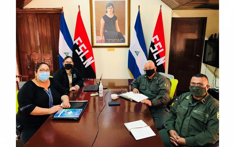 La Delegación Nicaragüense estuvo integrada por el Coronel Vinicio Chavarría, Jefe del Cuerpo de Ingenieros del Ejército de Nicaragua; Mayor Adrián Useda, del Cuerpo de Ingenieros del Ejército de Nicaragua; Compañera Edita Miranda del Ministerio de Relaciones Exteriores; y la Compañera Aminta Díaz Flores, Asesora Legal del Ministerio de Defensa.