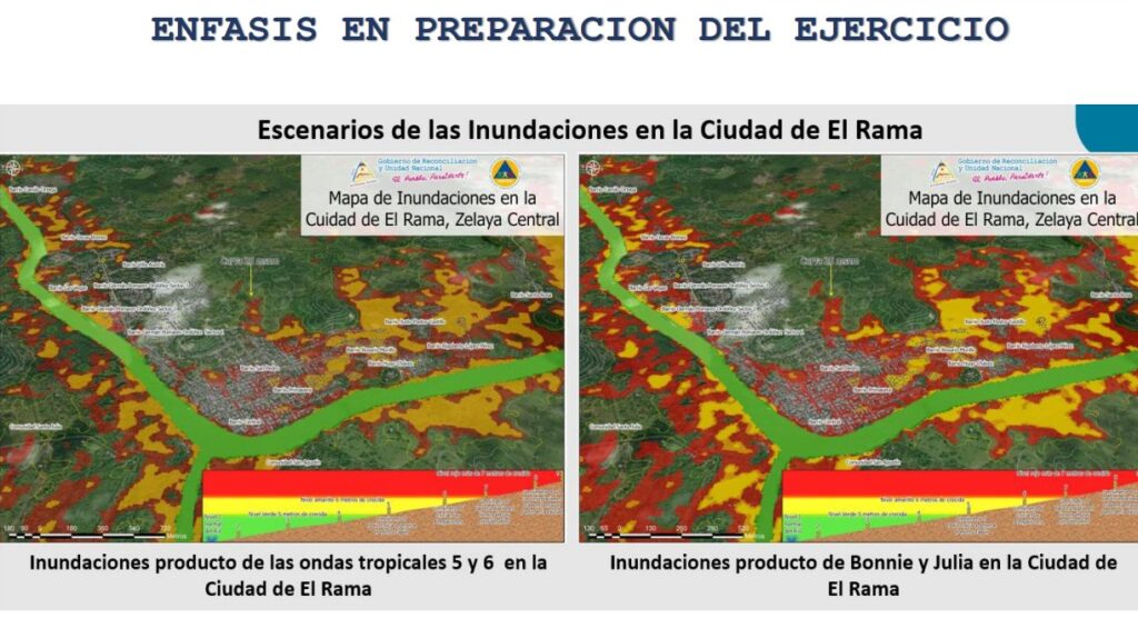 “Estamos hablando que si hacemos la división, casi tres (tormentas) por mes. Entonces, es muy importante, tenemos que estar listos, tenemos que estar preparados. Por tanto, vamos a priorizar en este ejercicio aquellos sitios urbanos que tienen antecedentes de inundación. Estamos hablando de Matagalpa, Jinotega, la zona de Ochomogo. Vamos a priorizar las zonas costeras, vamos a priorizar los colegios que están en las zonas costeras, vamos a priorizar aquellos lugares de concentraciones humanas, importantes, los colegios, los CDI (Centros de Desarrollo Infantil), los hospitales”, detalló.