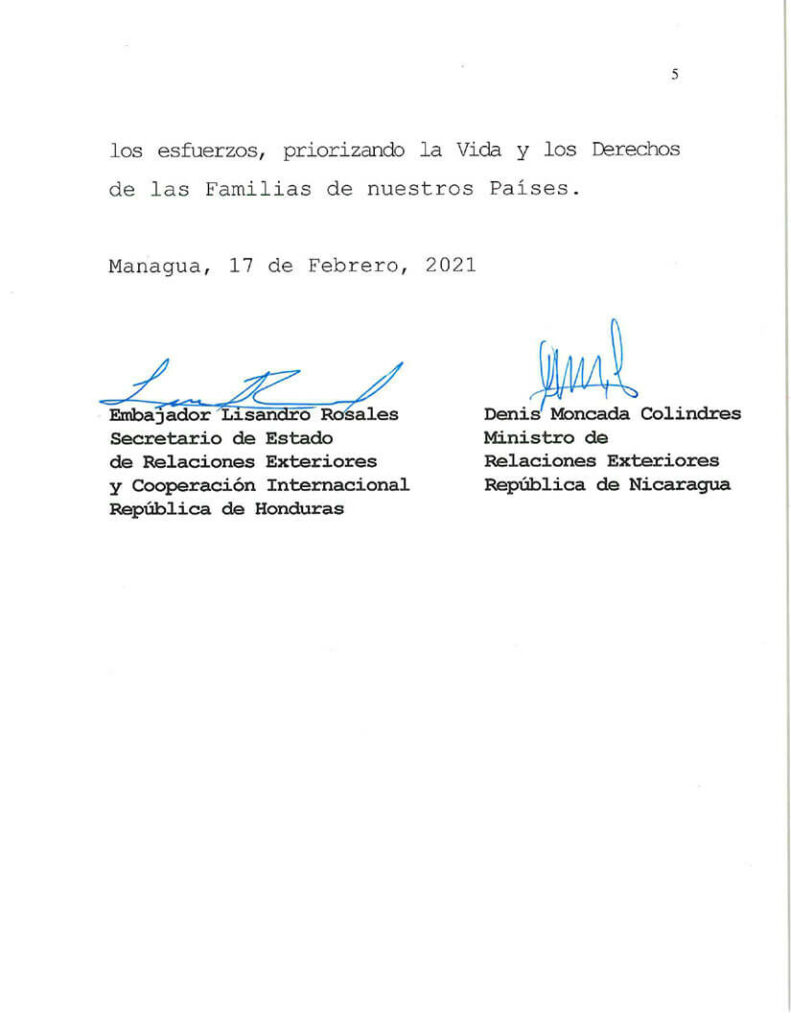 El Canciller de Nicaragua, Denis Moncada firmó este miércoles una declaración conjunta con su homólogo de Honduras, Lisandro Rosales, sobre los desafíos que enfrenta Centroamérica.