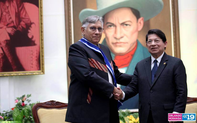 La ceremonia se realizó en Managua en la sede del Ministerio de Relaciones Exteriores, donde el canciller Denis Moncada entregó la distinción otorgada por el trabajo que realizó el diplomático en este país.
