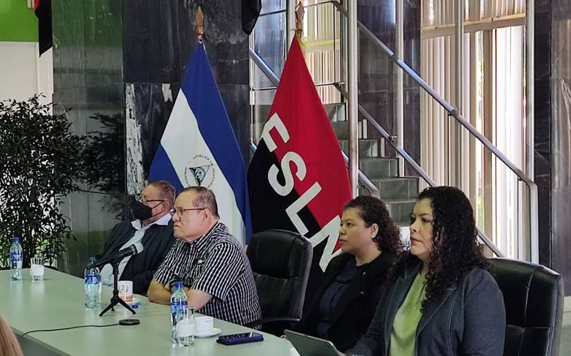 La Presentación de los resultados estuvo a cargo del Compañero Javier Gutiérrez, Secretario de Cambio Climático de la Presidencia, Compañera Guisell Morales, Embajadora de Nicaragua en Reino Unido, Compañera Luz Elena Sequeira, Especialista en Finanzas del Clima del MHCP, Compañero Jaime Hermida, Embajador de Nicaragua en ONU, Nueva York.