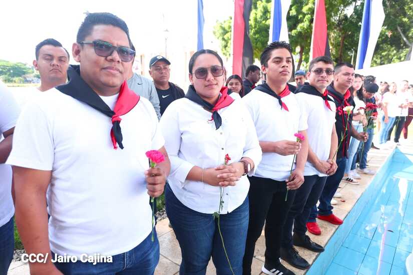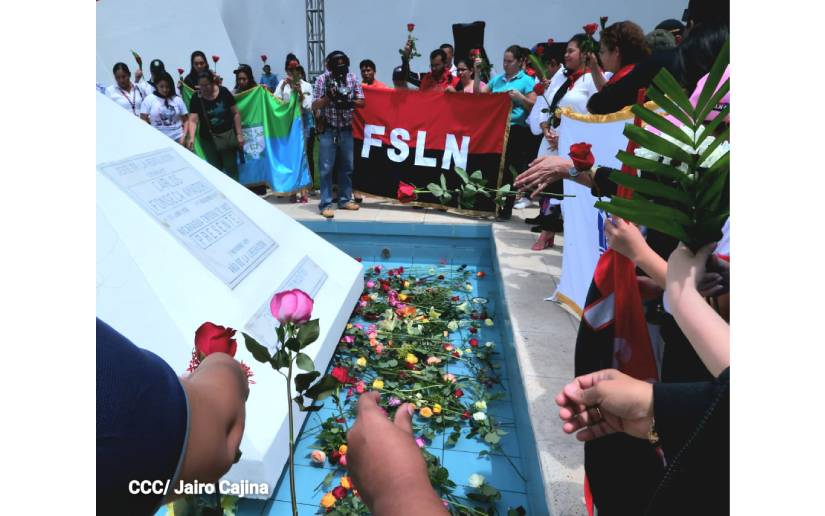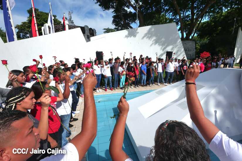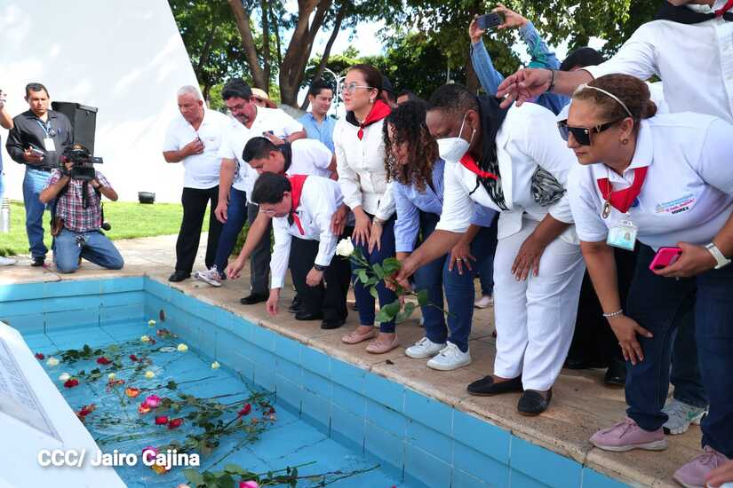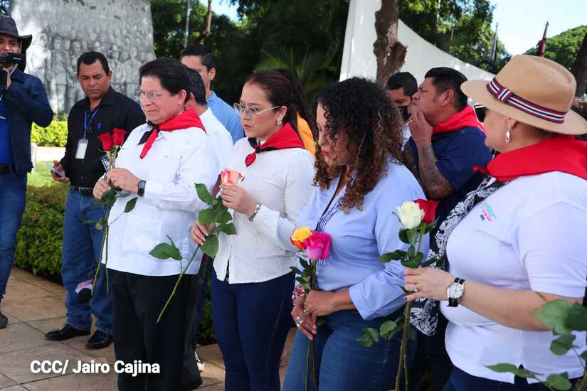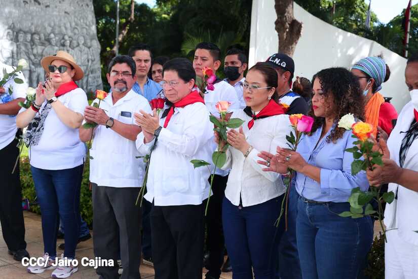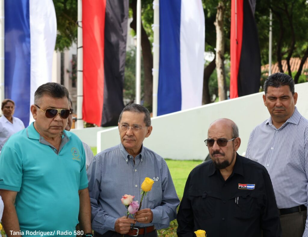 La conmemoración fue propicia también para depositar sendas ofrendas florales en el espacio dedicado al comandante, Tomás Borge Martínez, quien junto a Fonseca fundó el FSLN.
