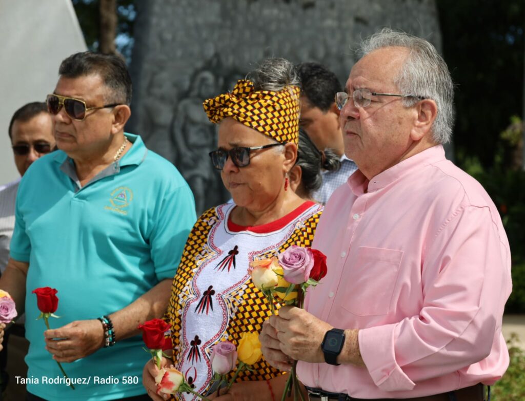 Servidores públicos de la Cancillería de Nicaragua, encabezados por el Canciller Denis Moncada, también llegaron al monumento.