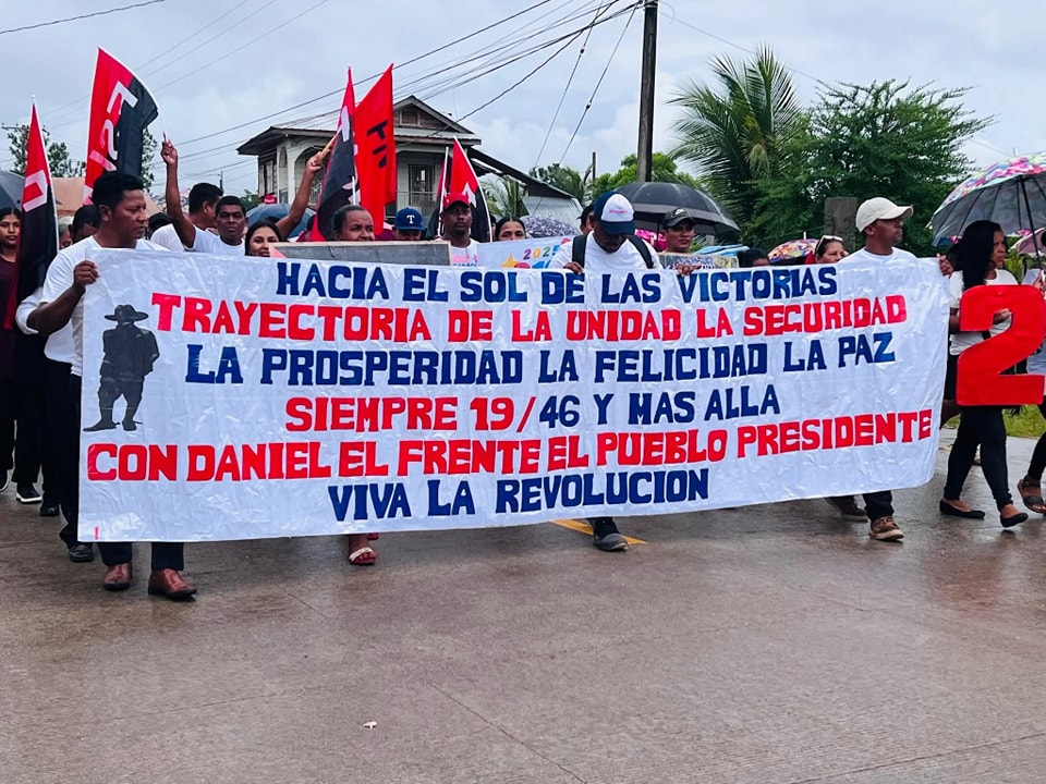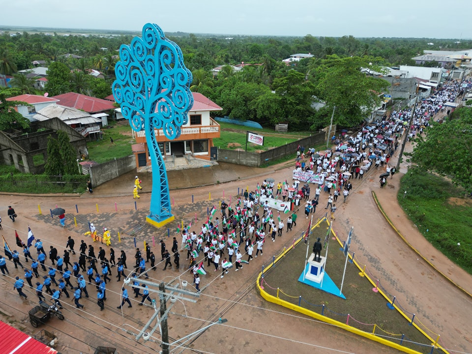“Con alegría, compromiso y espíritu revolucionario, el Frente Sandinista de Liberación Nacional, acompañado por la Policía Voluntaria, la militancia sandinista y las Unidades de Victoria, realizó una caminata en la ciudad de Bilwi, Puerto Cabezas. La caminata partió desde la gasolinera Harry Maykel y concluyó en el Centro Tecnológico Ulises Santiago Gogó, en homenaje al Héroe de la Paz que lleva ese nombre, al cumplirse siete años de su paso a la inmortalidad y en solidaridad con el pueblo de Palestina”, informó la Alcaldía de Puerto Cabezas, a través de su cuenta en Facebook.