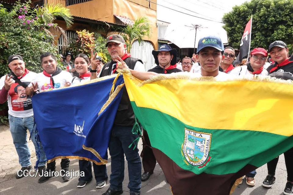 En Managua, la caminata salió del Complejo Deportivo Hugo Chávez, ubicado en el Distrito V de Managua y concluyó en la Colina 110, Distrito VII, donde hace 46 años fueron asesinados más de 30 guerrilleros de manos de la genocida Guardia Nacional.