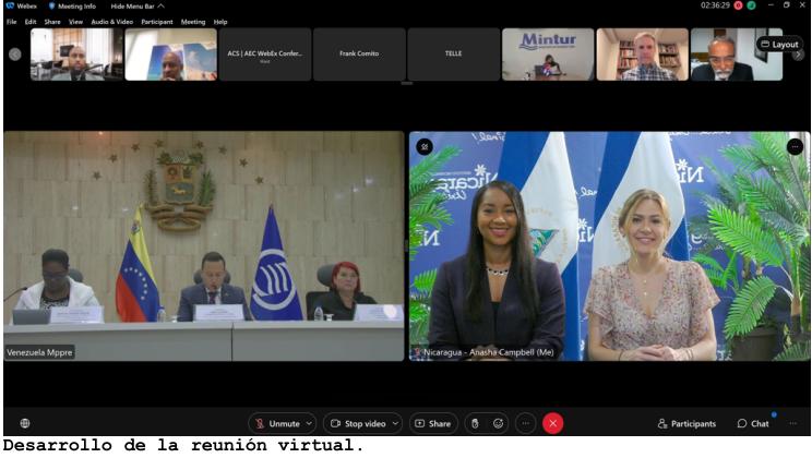 Nicaragua participó virtualmente en la reunión de alto nivel de autoridades de turismo de la Asociación de Estados del Caribe (AEC), evento organizado por Venezuela, en su calidad de Presidente Pro Tempore del Comité Especial de Turismo Sostenible de la AEC.