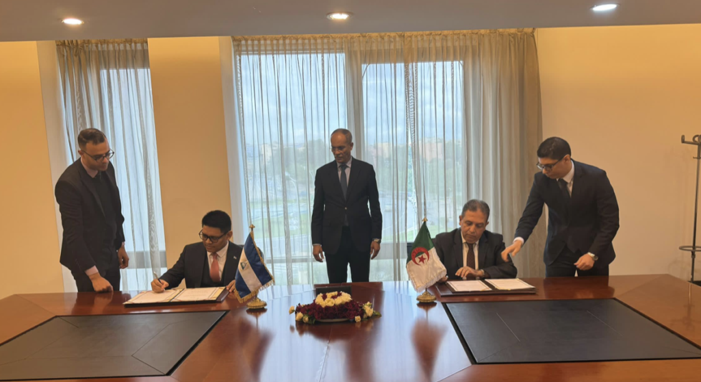 En la sede del Ministerio de Asuntos Exteriores y de la Comunidad Nacional en el Extranjero de la República Argelina Democrática y Popular, el Gobierno de Reconciliación y Unidad Nacional a través de su representación diplomática en Argelia, firmó memorando de entendimiento que fortalece las relaciones bilaterales entre Argelia y Nicaragua.