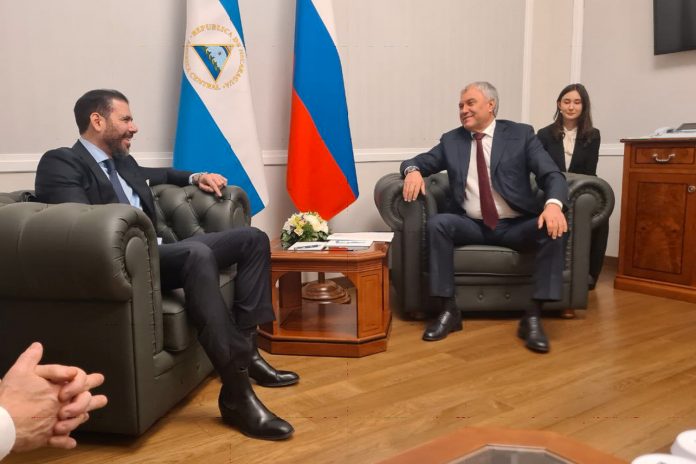 Los proyectos de la agenda bilateral, la asociación estratégica y la hermandad entre Nicaragua y Rusia, fue ratificada durante un encuentro que sostuvo este 19 de febrero, el Asesor para Inversiones, Comercio y Cooperación Internacional, Compañero Laureano Ortega Murillo y el Presidente de la Duma Estatal Viacheslav Volodin.