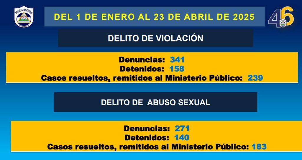 Así mismo, del 1 al 23 de abril, se recibieron 341 denuncias por violación con 158 capturados y 271 por abusos sexuales con 140 sujetos puestos tras las rejas.