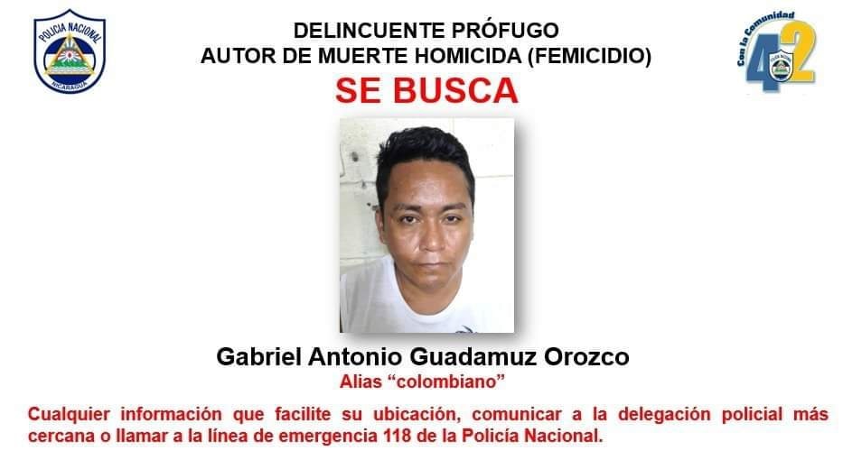Tras las investigaciones, la OIJ difundió la fotografía de Guadamuz Orozco para dar con su paradero y de acuerdo a las indagaciones de esta entidad el sujeto está siendo buscado en Nicaragua por el femicidio de Brenda del Carmen Hernández Escoto, de 50 años, quien fue estrangulada y luego enterrada en el patio de su bar y motel en el barrio El Coyolar, en la ciudad de León.
