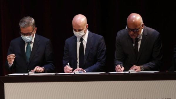 Saludamos la firma del Memorándum de entendimiento alcanzado entre el Gobierno de la República Bolivariana de Venezuela y la Plataforma Unitaria de la Oposición. Agradecemos a México y Noruega, sus esfuerzos por la Paz del pueblo venezolano #LoLogramosEnMéxico pic.twitter.com/wjsCkP7Crs