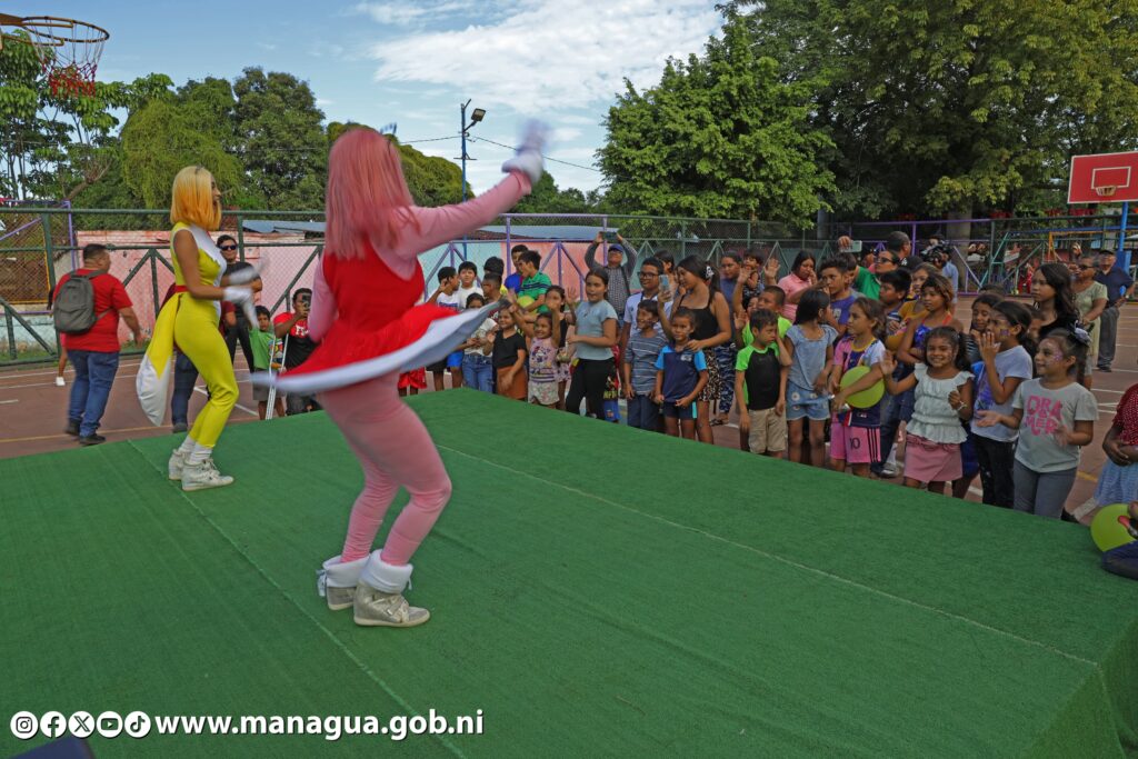La Alcaldía de Managua realizó este jueves un festival recreativo con los niños del barrio Ángel Valentino y sectores aledaños, en la continuación de las celebraciones de Julio Victorioso, garantizando la sana recreación y esparcimiento de la niñez en un ambiente familiar.