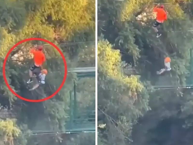 (RT).- Un niño de seis años cayó desde una tirolesa a 12 metros de altura en un parque de la ciudad mexicana de Monterrey. Afortunadamente el menor resultó ileso, puesto que cayó en un lago, y fue rescatado a la brevedad por el personal, recogen medios locales.