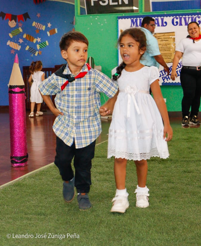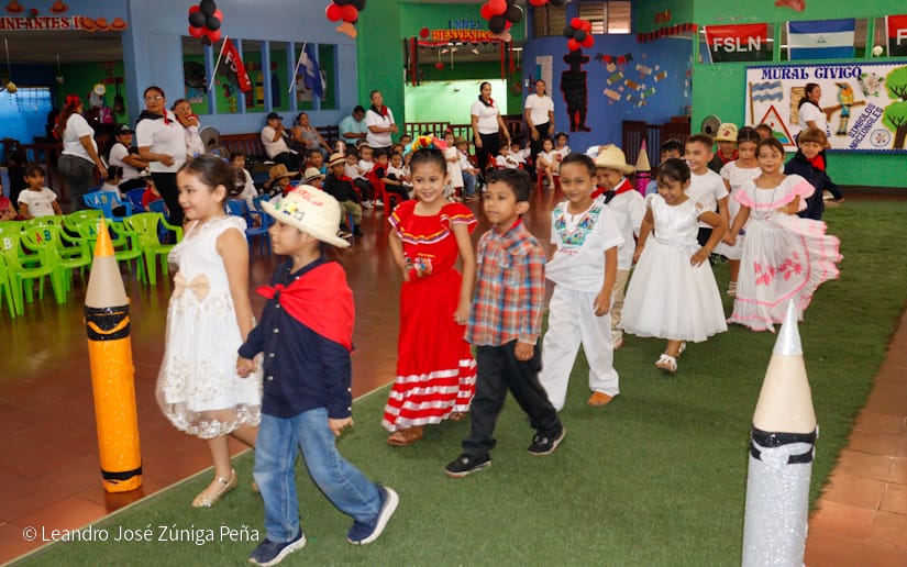 Al menos 150 niños y niñas del Centro de Desarrollo Infantil, Claudia Chamarro de Managua, desarrollaron este miércoles, una pasarela saludando el 46 aniversario del triunfo de la Revolución Popular Sandinista.