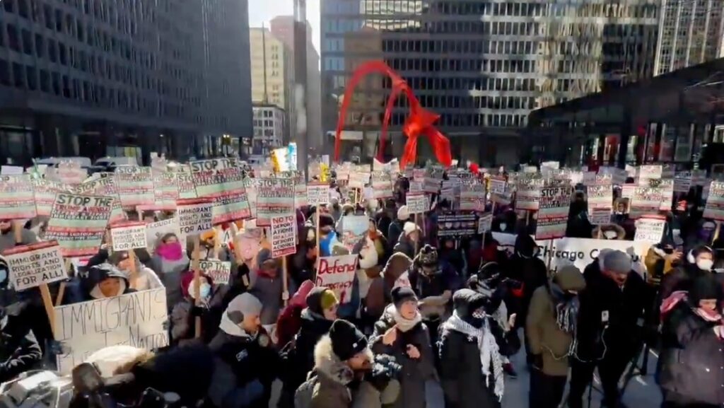 "¡No nos vamos a dejar!", miles de migrantes, incluidos mexicanos, se manifiestan en Chicago en respuesta a la amenaza de deportaciones masivas durante la toma de posesión de @realDonaldTrump.