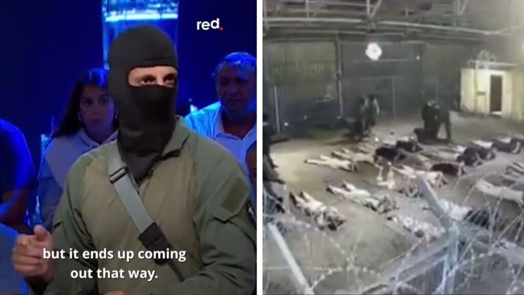 Footage shows Israeli soldiers ra*ping a Palestinian hostage at the Sde Teiman torture camp.