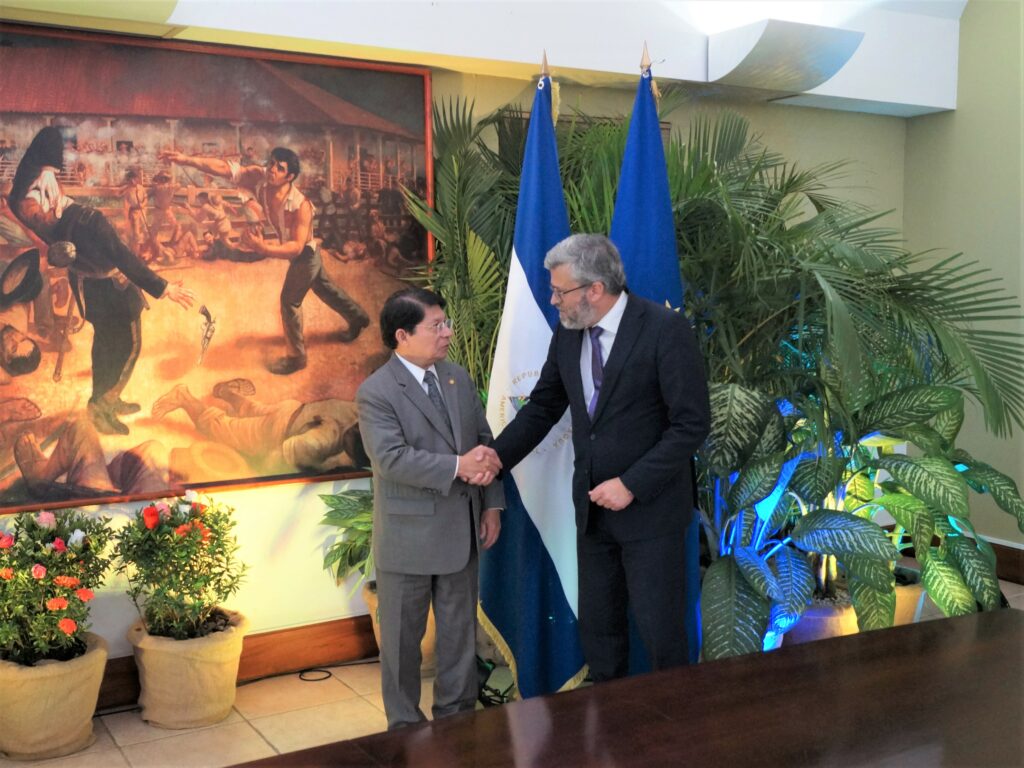 El nuevo embajador asignado por la Unión Europea (UE), Fernando Ponz Cantó, entregó al canciller de Nicaragua, Denis Moncada Colindres, las copias de estilo que lo acreditan para iniciar oficialmente su misión diplomática en el país.