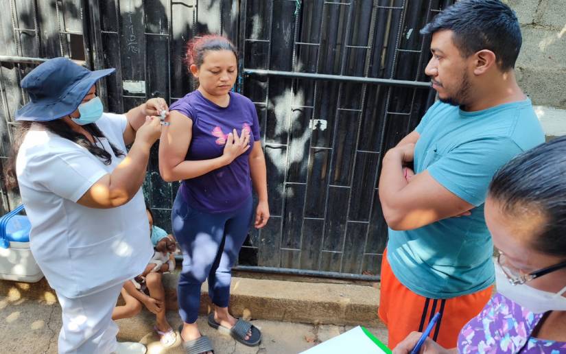 El Ministerio de Salud realizó la vacunación voluntaria contra el Covid-19, visitaron casa a casa en el barrio Memorial Sandino en Managua para aplicar el nuevo esquema de vacuna.
