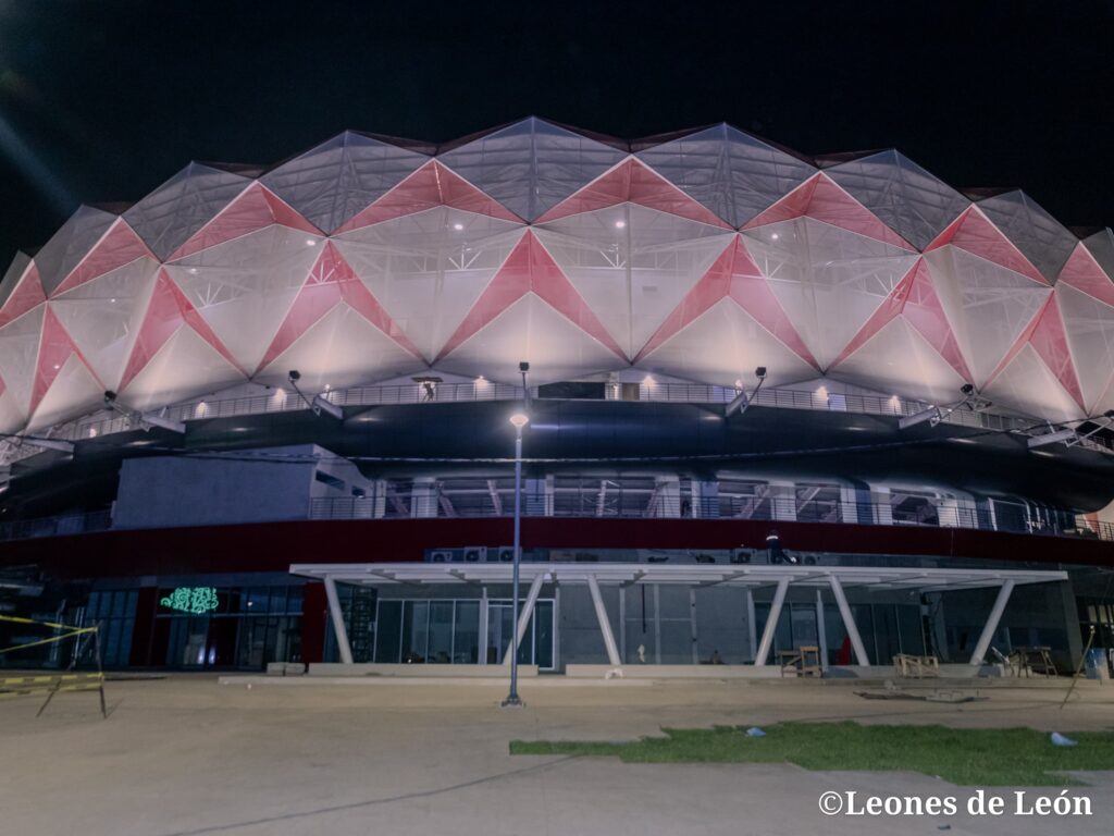 El nuevo estadio de León está próximo a abrir sus puertas, esta semana se instalaron las torres del estadio y se realizaron pruebas de las luces exteriores . El sistema de sonido los “ribbons” y la pantalla led ya están completamente instalados y funcionando.