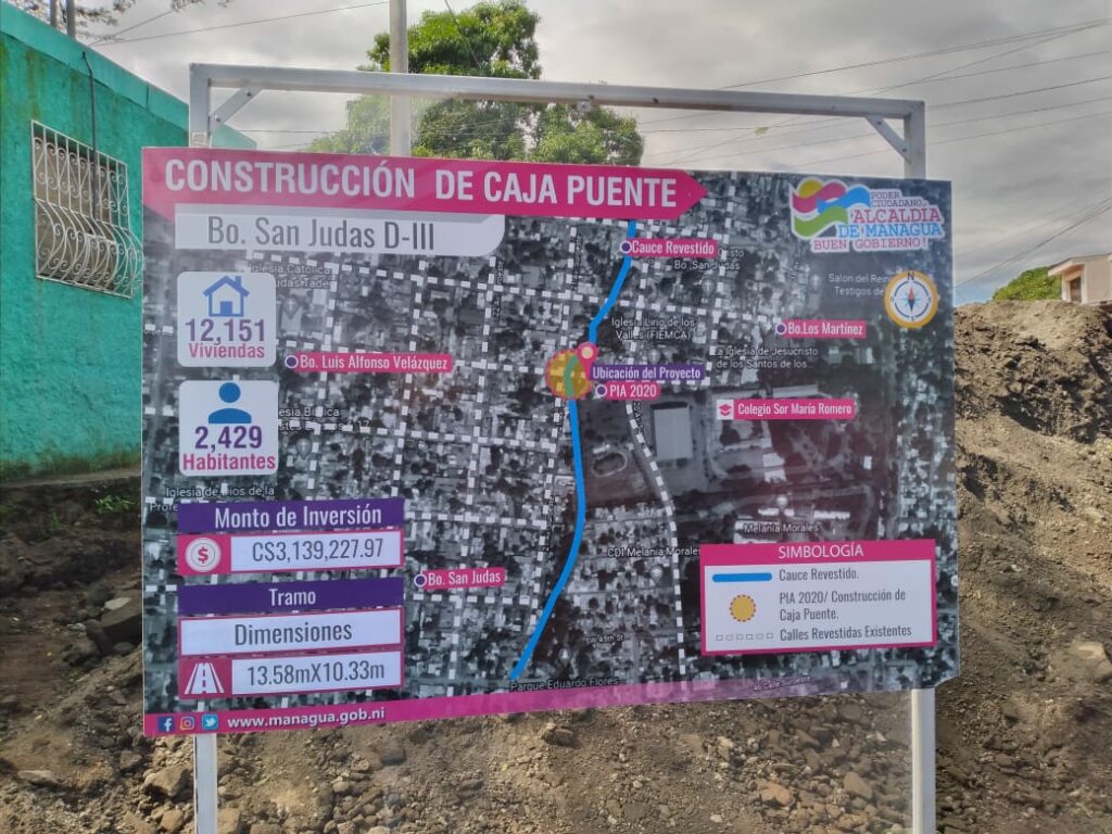 La caja puente tiene 10.30 metros de longitud y 13.58 metros de ancho, cuenta con una inversión de 3.2 millones de córdobas y beneficiará directamente a más de 12 mil personas que habitan en 2 mil 500 viviendas.