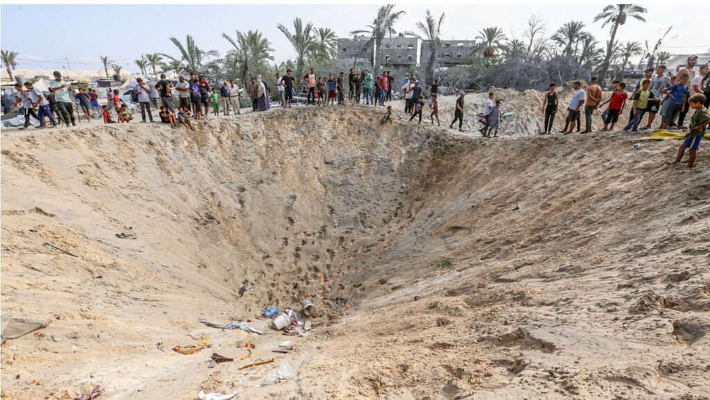El gran tamaño de los cráteres y un fragmento de munición que dejó el bombardeo israelí en un campamento de refugiados en Al Mawasi, cerca de la ciudad gazatí de Jan Yunis, en la madrugada de este martes evidencian el uso de bombas de 2.000 libras (907 kilos), concluye el análisis realizado por The New York Times, que consultó con tres expertos en materia de armas.
