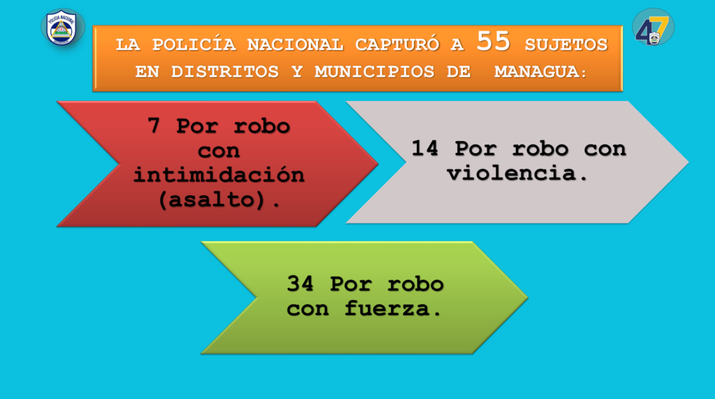 Entre los capturados, 55 fueron en todos los municipios de Managua y 37 en los departamentos, entre los cuales se destacan, dos homicidas en Matagalpa y Nueva Segovia.