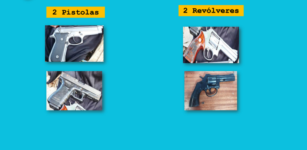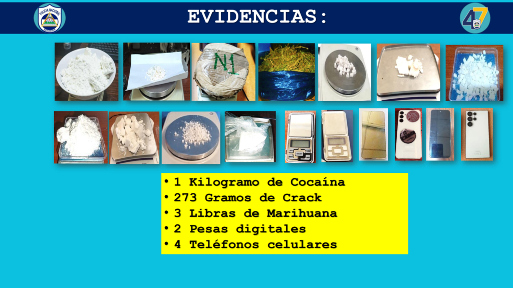“Evidencias ocupadas un kilo de cocaína, 273 gramos de crack, 3 libras de marihuana, dos pesas digitales y cuatro teléfonos celulares. También durante este plan se ocuparon cuatro armas de fuego, dos pistolas y dos revólveres”, detalló el informe de la institución del orden público.