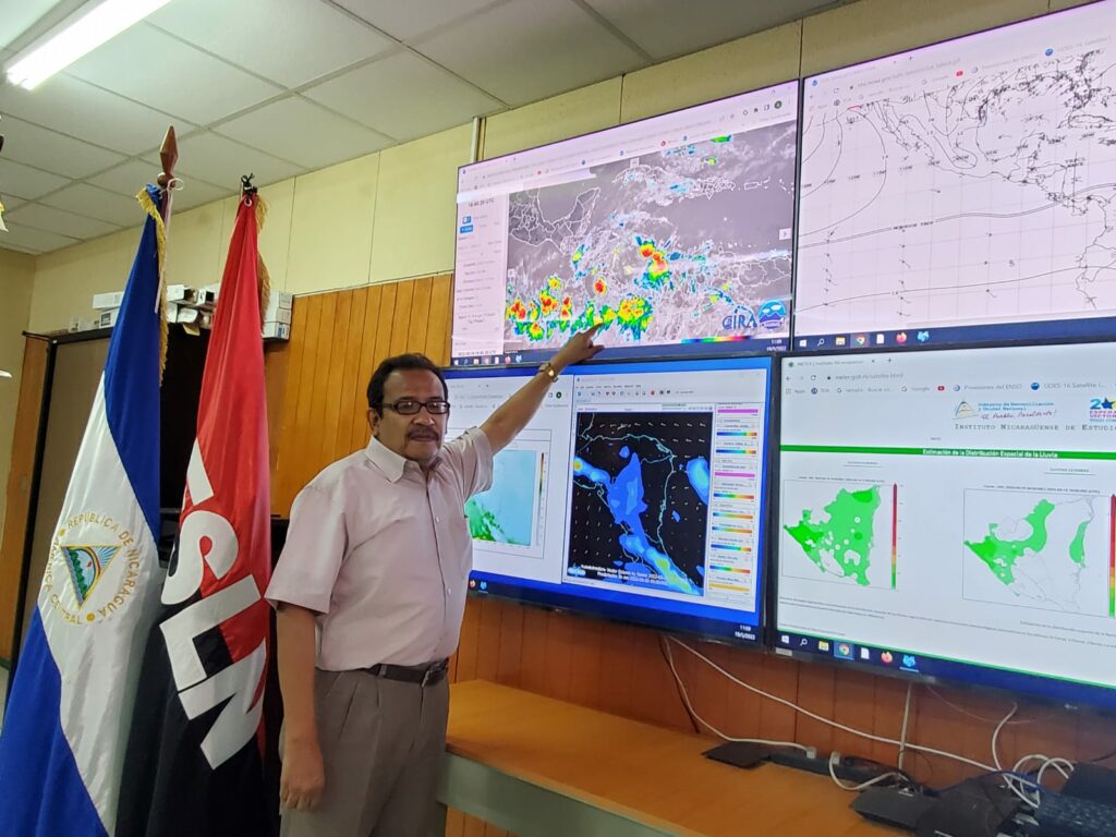 «Vamos a actualizar las condiciones del tiempo que están rigiendo a partir de hoy para los próximos dos o tres días. Básicamente tenemos ya la primer Onda Tropical a lo largo del litoral del Caribe Nicaragüense», señaló Vaca.