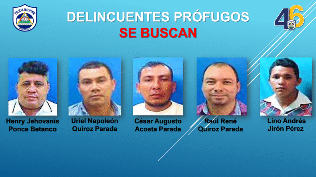 Los delincuentes a bordo de la camioneta fueron identificados como Henry Jehovanis Betanco de 53 años, alias Chichero; Uriel Napoleón Quiroz Parada de 35 años, alias Napo; César Augusto Acosta Parada de 37 años, Raúl René Quiroz Parada de 38 años y Lino Andrés Jirón Pérez de 32 años.