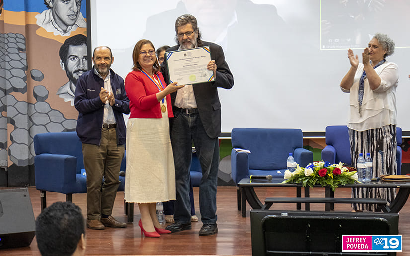 La ceremonia tuvo lugar en el auditorio Fernando Gordillo de la UNAN-Managua y según su rectora, Ramona Rodríguez, la distinción se concedió por el amor y entrega de Abel al rescate de la historia e identidad cultural de los pueblos.