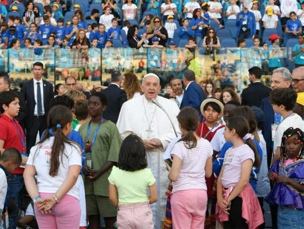 La actividad, que contó con la asistencia demás de cincuenta mil personas, comenzó con un desfile de más de 100 delegaciones, seguido de un espectáculo artístico musical, y tras un breve discurso, el Obispo de Roma conversó con los menores, a quienes dijo que “siempre es posible hacer la paz”.
