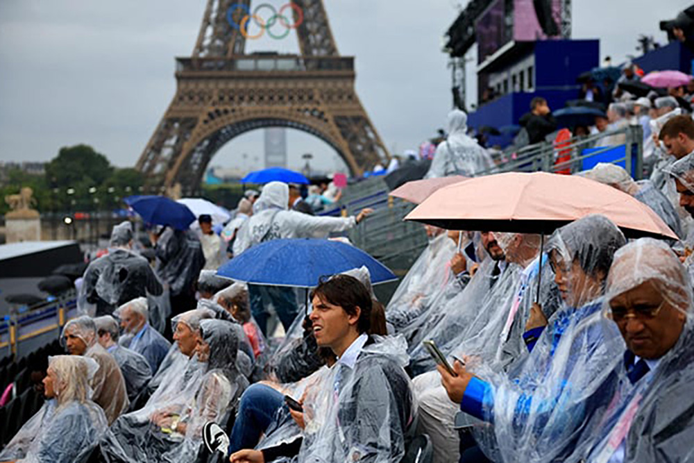 París 2024 será recordada como la histórica primera inauguración fuera de un estadio, pero también por la lluvia como su inesperada protagonista.