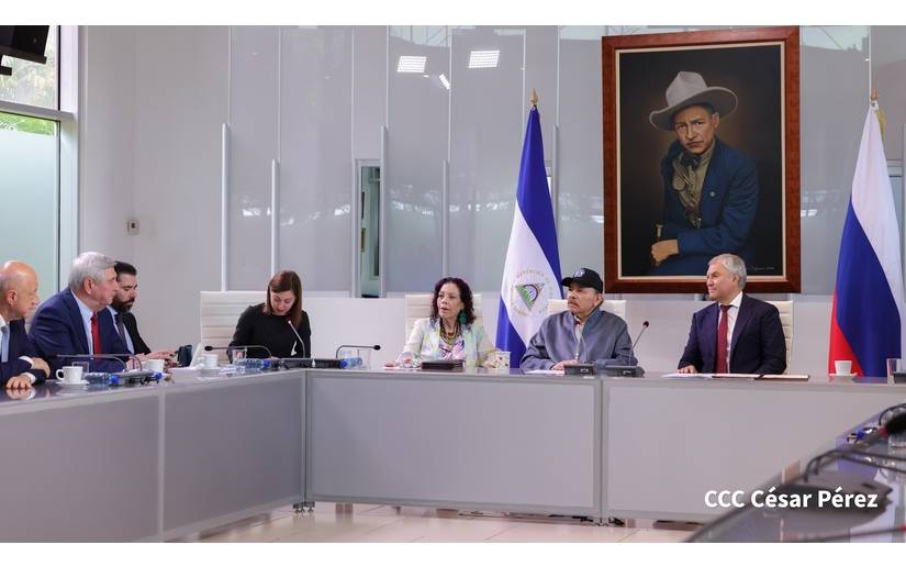 El Presidente de Nicaragua, Comandante Daniel Ortega, se reunió con una destacada delegación encabezada por el Presidente de la Duma Estatal de Rusia, Vyacheslav Volodin, para discutir temas de interés internacional y regional.