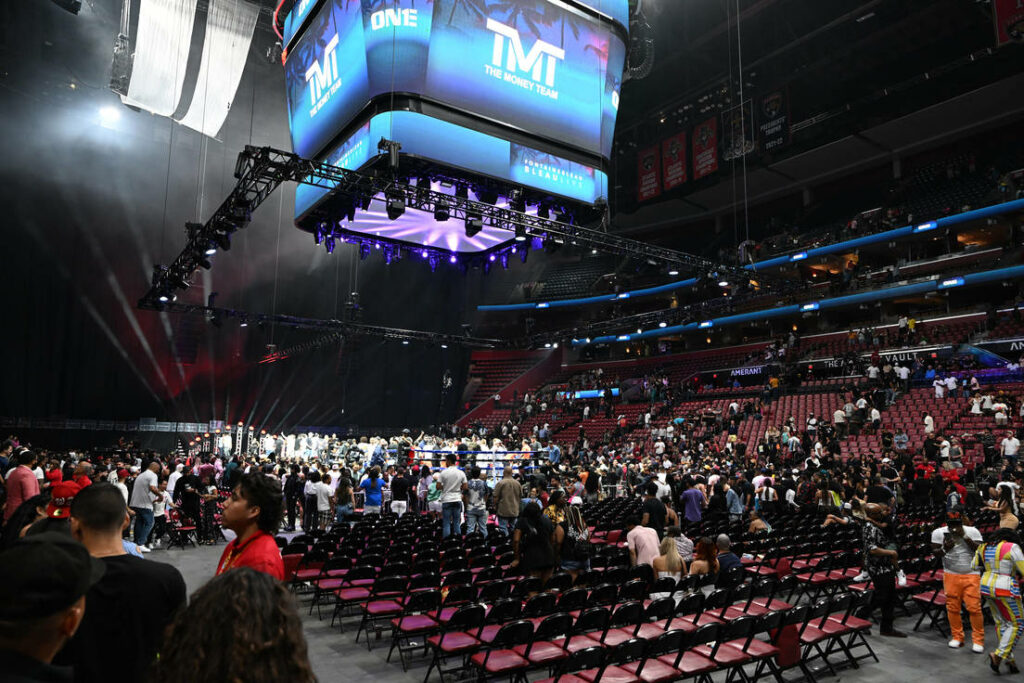 Mayweather, de 46 años, que terminó su carrera profesional en 2017 después de 50 combates invicto, logró salir ileso del ‘ring’ y se marchó a los vestuarios evitando la ira de un público enfurecido por la suspensión del combate en el sexto asalto.