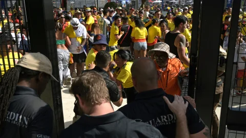 Asimismo, en otro video se ve a hinchas colombianos presuntamente intentando colarse en el estadio, pero son rápidamente detenidos por el personal de seguridad.