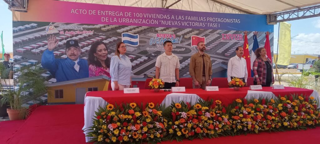 Durante el acto de entrega de las casas, participaron además, el Embajador de la República Popular China en nuestro país, Qu Yuhui; el Asesor Presidencial para la Promoción de las Inversiones, Comercio y Cooperación Internacional, Laureano Ortega; la Alcaldesa de Managua, Reyna Rueda; y la Codirectora del Instituto de la Vivienda Urbana y Rural, Gabriela Palacios.