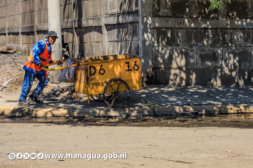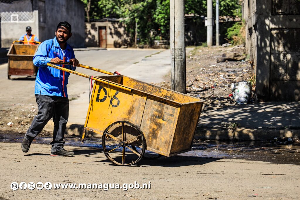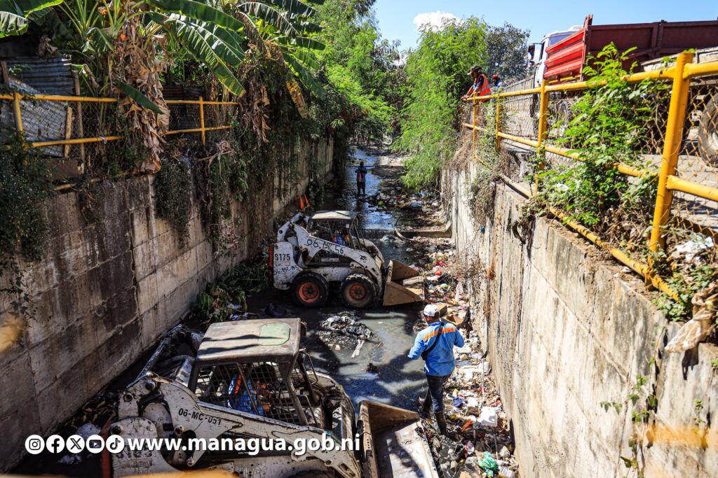 “Aquí en la zona aledaña a la Carretera Norte, viendo cómo avanzan los trabajos de limpieza en la zona de los cauces de Managua y específicamente como parte del plan que se desarrolla por parte de la municipalidad, del Plan Invierno, alistándonos para la temporada de lluvia, todavía estamos en marzo. Tenemos ya aquí un par de docenas de compañeros desplegados, trabajando en el cauce La Primavera, tenemos cuatro camiones aquí, tenemos operarios y tenemos hermanos limpiando el cauce, específicamente aquí en la zona”, reiteró Armas.