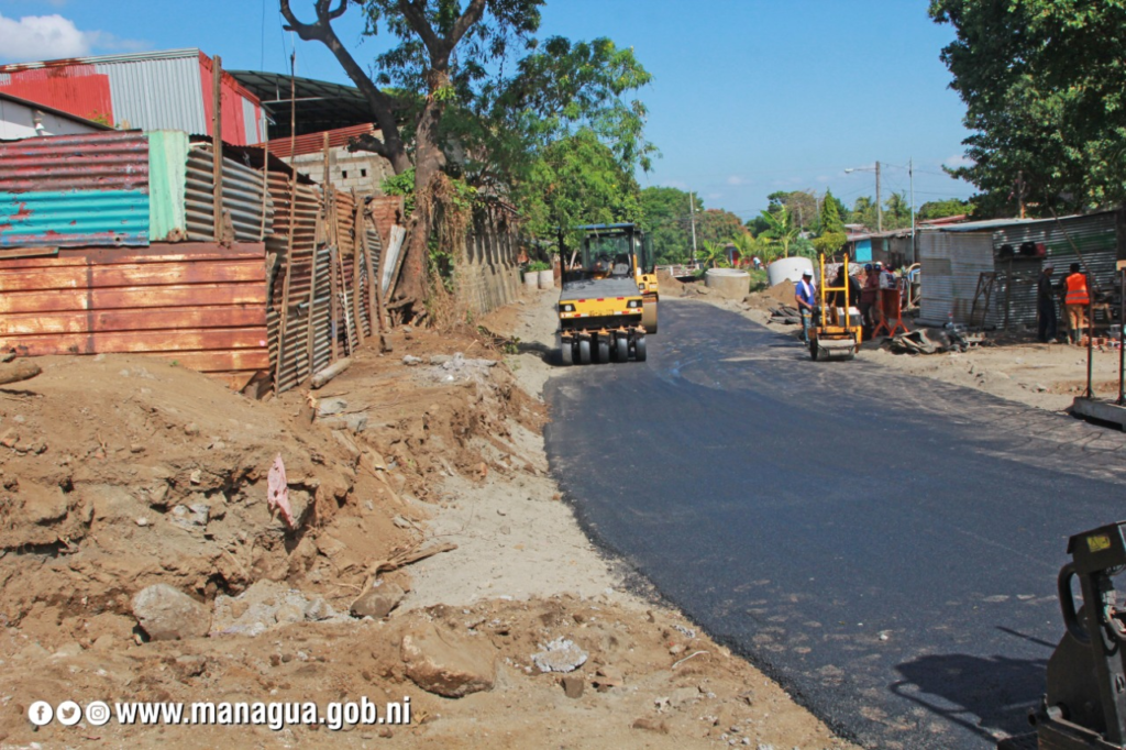 Con una inversión de 12 millones de córdobas la Alcaldía de Managua, ejecuta un proyecto de mejoramiento vial que consiste en la pavimentación de cuatro calles y obras de drenaje pluvial en el barrio Sócrates Sandino del distrito V.