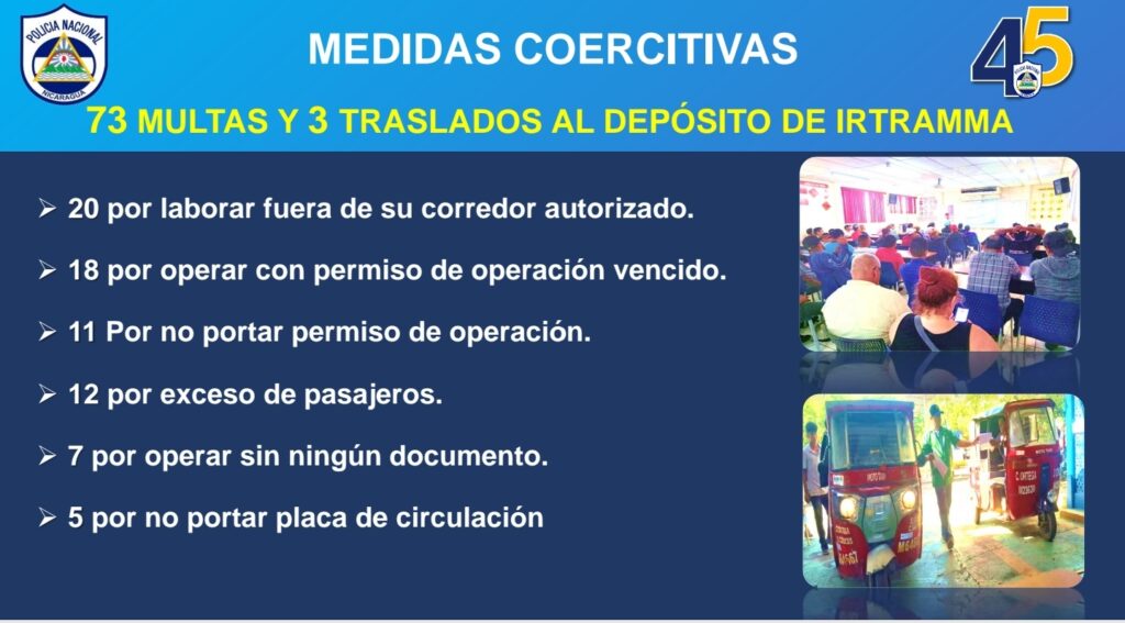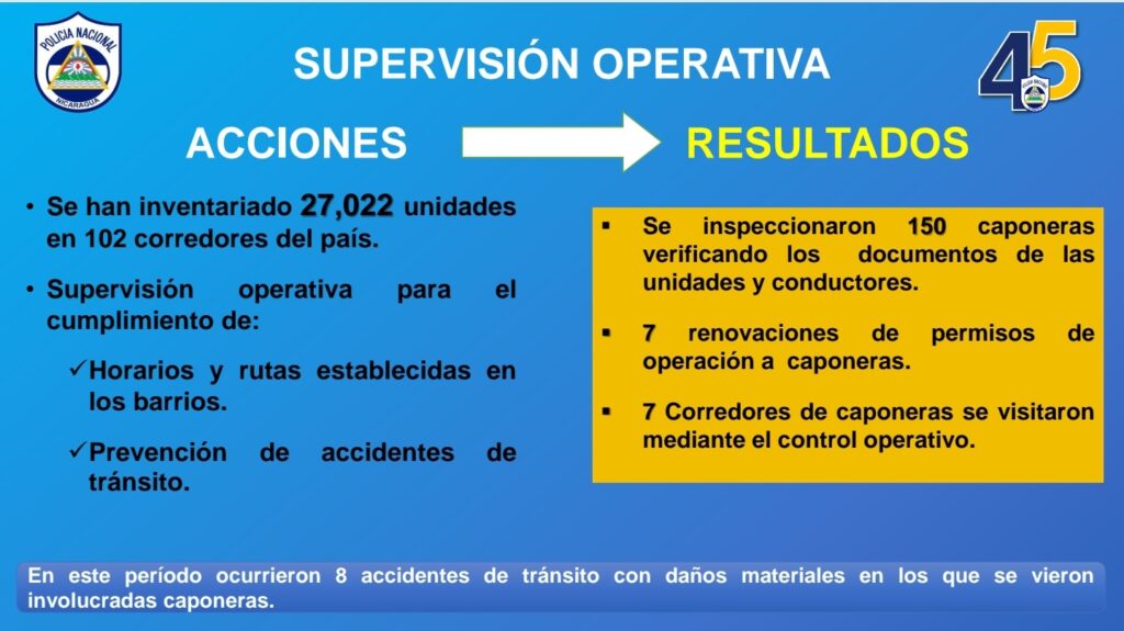El también Inspector General de la entidad policial, detallo que de inspeccionaron 150 caponeras verificando los documentos de las unidades y conductores, se emitieron 7 renovaciones de operación a caponeras y que 7 corredores de caponeras se visitaron mediante el control operativo.