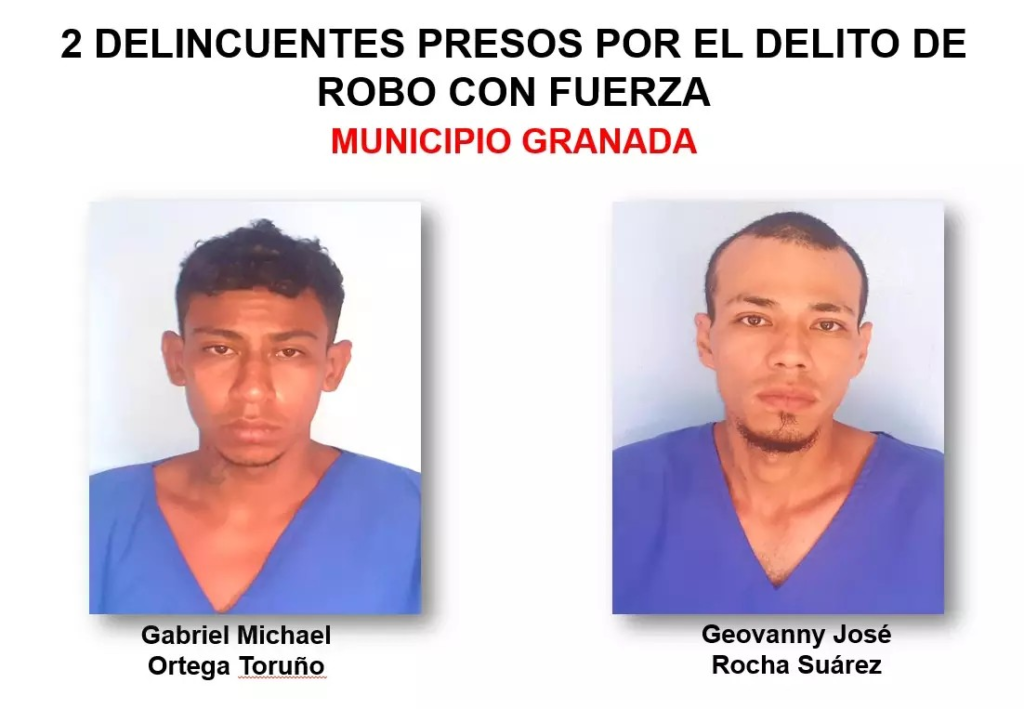 En tanto por robo con fuerza están Ortega Toruño y Geovanny José Rocha Suárez, todos habitantes del municipio de Granada.