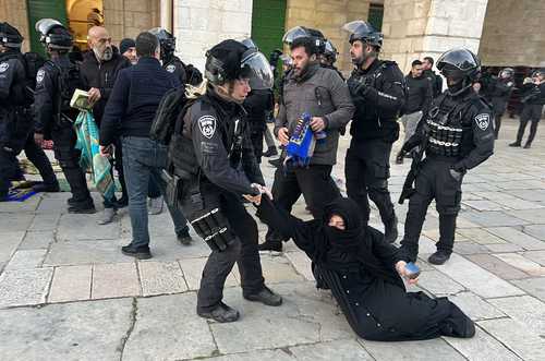 התחלה רעה מאוד לרמדאן. שוטרים מכים באלות מתפללים בשער אלאקצא לפני תפילת התראוויח הראשונה.