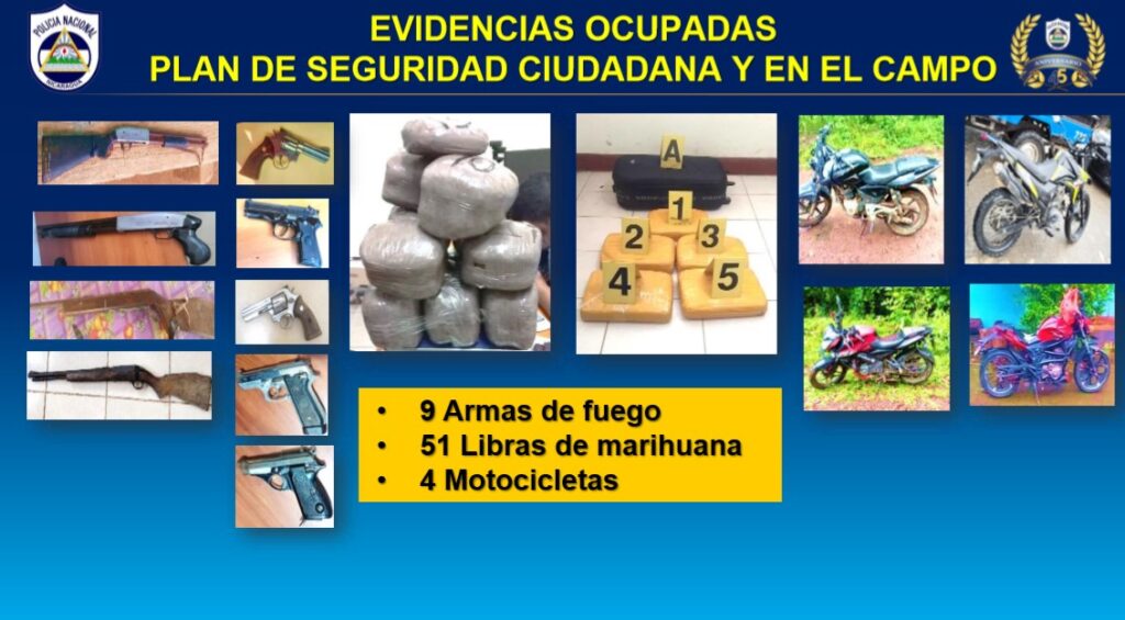 El funcionario destacó que dentro de los detenidos se encuentran 12 por tráfico de drogas y 2 por el delito de abigeato, además, entre las evidencias ocupadas se decomisaron 512 libras de marihuana, 9 armas de fuego y 4 motocicletas.