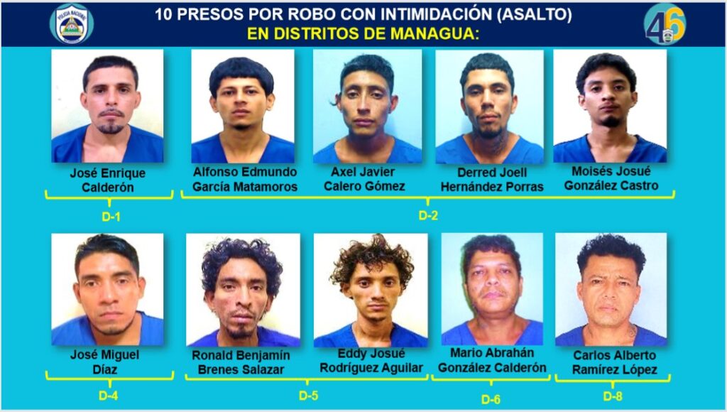 Dentro de los 13 detenidos por cometer asaltos, 10 fueron en Managua, mientras que los homicidas, 2 en el municipio de El Tortuguero Región Autónoma Caribe Sur y dos más en Jinotega.