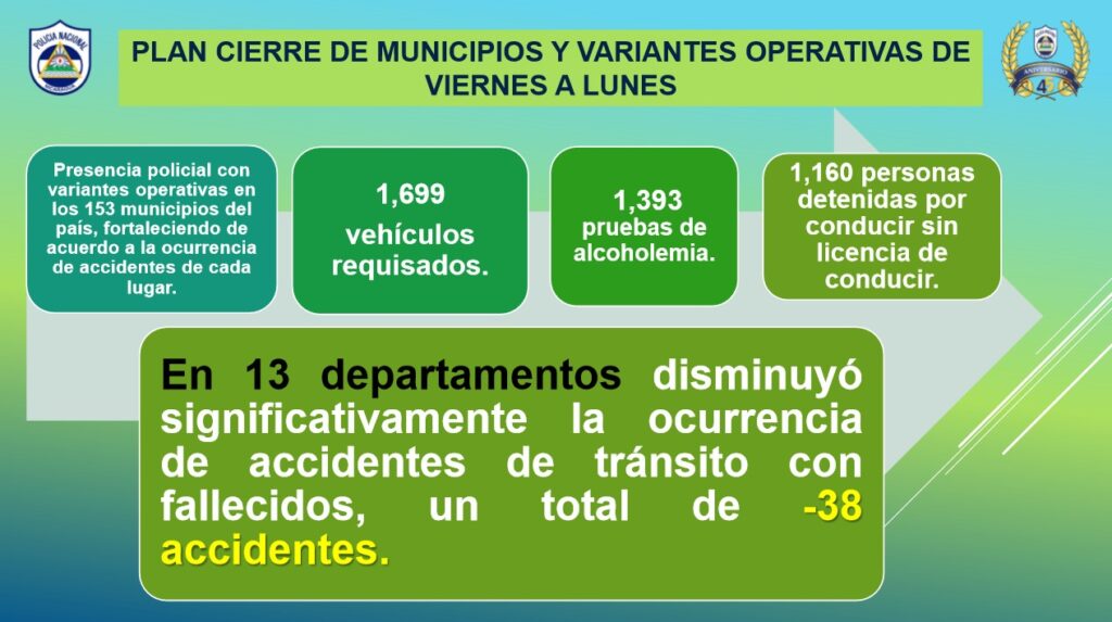 Vanegas informó,que en relación al Plan de Seguridad de las Caponeras, ocurrieron 18 accidentes, se requisaron 28,638 unidades y se aplicaron 13 pruebas de alcoholemia a los conductores de estos vehículos livianos.
